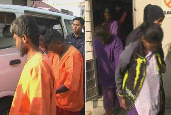 Enam sekeluarga termasuk sepasang suami isteri direman selama tujuh hari di Mahkamah Majistret, Jasin bagi membantu siasatan pembunuhan seorang bayi lelaki yang ditemui mati di dalam perigi di Kampung On Lok, Batang Melaka, Jasin. STR/ MUHAMMAD ZUHAIRI ZUBER