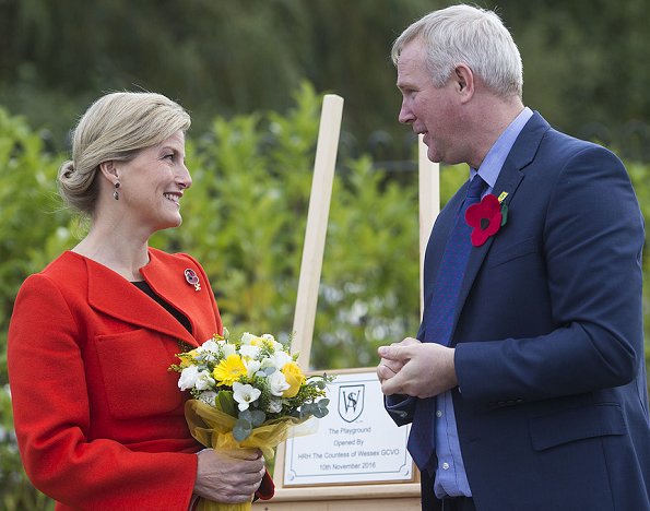 On November 17, 2016, Countess Sophie of Wessex visited Portesbery School in Camberley, England. Por ...