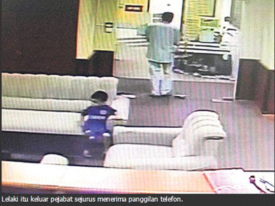 “Pegawai di kaunter mula mengesyaki ada sesuatu yang tidak kena dan bertindak mencari lelaki terbabit namun gagal. Sewaktu kejadian, keadaan di luar pejabat agak sibuk memandangkan raptai penuh perbarisan Hari Kemerdekaan sedang dijalankan,” katanya pada sidang media, semalam.