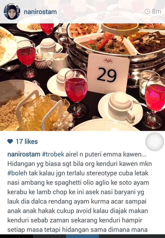 Mmg perangai tak semenggah pun...kutuk lauk kenduri org, padahal kenduri kahwin anak dia takde pun lamb chop semua tu. Tetap nasi minyak jugak yg dihidangkan..