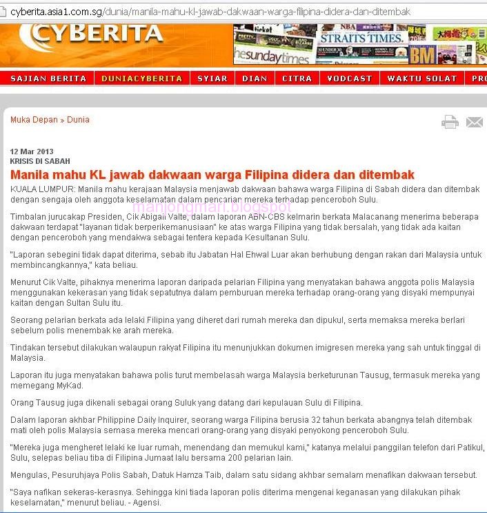 Ketika ditanya tentang dakwaan kekejaman polis Malaysia terhadap imigran Filipina di Sabah, Esmail Kiram menyatakan, ia bukan perkara baharu dan layanan buruk tersebut berlaku sejak sebelum krisis di Sabah berlaku.
