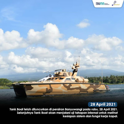 Alutsista terbaru, Tank Boat telah meluncur di perairan Banyuwangi pada rabu, 28 April 2021. Tank Boat akan menjalani tahapan uji internal untuk memeriksa kembali seluruh fungsi kapal diatas air.