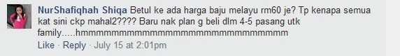 tu harga sebenar le kak..aku g jalan tar pas balik keje kat ofis,tgok baju plg cantik koleksi pak harun..last price mmg dia bagi 150 complete ngan sampin segala.and this was e weeks ago.jgn xtau jakel ni markup harga camni psl amalkan konsep tawar menawar instead of fix price |