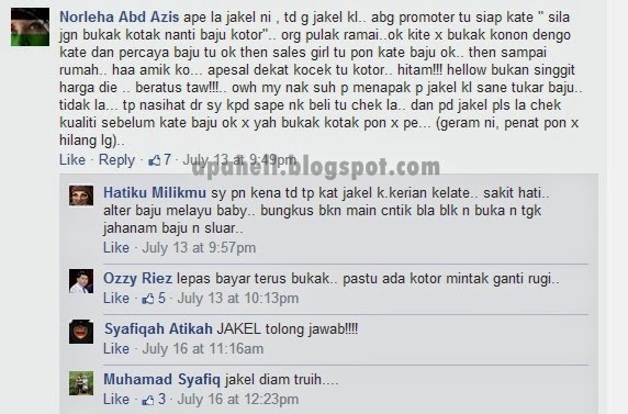 Terbaru , selepas 2 minggu baju berjenama pelakon terkenal di Malaysia yang menjadi pujaan ramai hati peminatnya dilancarkan, ramai pelanggan yang telah membeli meluahkan rasa tidak berbaloi , tidak berpuas hati dan rasa tertipu.