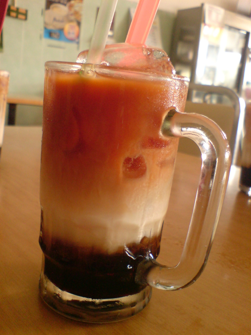 it consists of black tea, evaporated milk n brown coconut sugar in syrup form...here's 4u