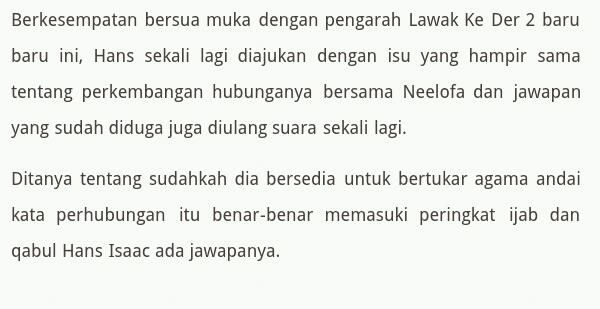 iols pon kurang berkenan dy dengan hans. hans tu tah bila lah nak masuk islam. |