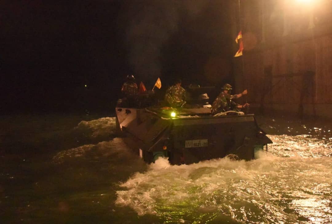 Frigate KRI R.E. Martadinata-331 sukses meluncurkan 33 meriam dengan dentuman keras dalam pendaratan amfibi saat puncak latihan, yakni Senin (25/10/2021).