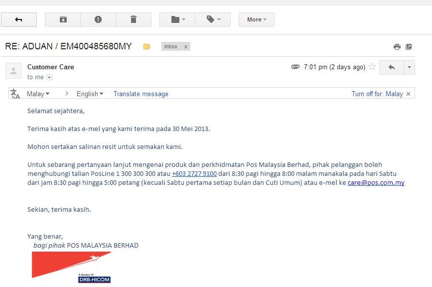 jadi pos laju la pilihan terbaik hok demo ado...nasib la