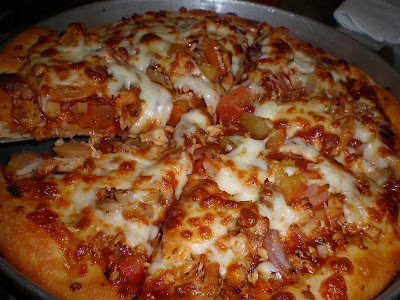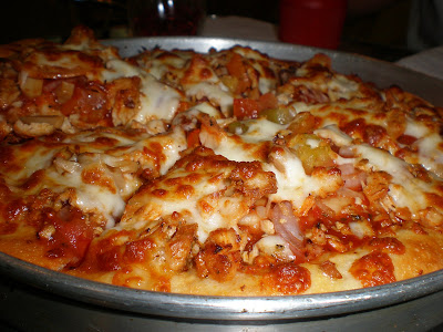 - Shredded Chicken, Chicken Pepperoni, Mushrooms, Fresh Tomatoes, Onions & Cheese.