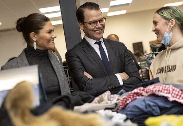 On Thursday, February 6, 2019, Crown Princess Victoria and Prince Daniel of Sweden visited Stockholm City Mission's warehouse for the second hand stores in Sätra and the social food store Matmission in Hägersten.