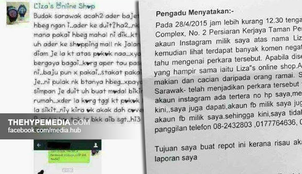 Susulan dari kes 'peniaga online menghina orang Sarawak' menjadi viral di media sosial, pemilik butik online, Liza Online Shoppe, tampil menafikan dakwaan itu dengan membuat laporan polis.