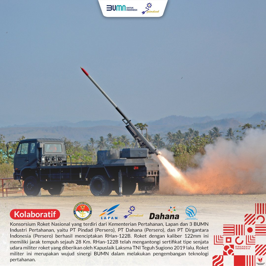 PT DAHANA (Persero) menunjukkan keseriusannya dalam pengembangan bidang Alat Utama Sistem Senjata (Alutsista), terutama di bidang peroketan dengan membangun Roket Smokeless Propellant. Uji coba perdana roket tanpa asap itu dilaksanakan di AWR TNI AU, Lumajang, Jawa Timur, Selasa, 28 Desember 2021.