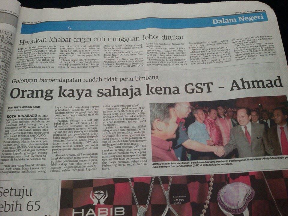 nak masak pun tak gune. stakat bahan2 mentah mmgla takde gst, tp barang2 berproses mcm serbuk kari cili giling ape suma tu ade jugak gst nye? ke nak suruh rakyat malaysia makan mentah2 je utk kesihatan ? |