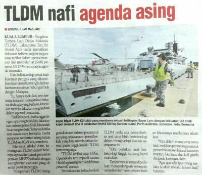 KUALA LUMPUR - Panglima Tentera Laut Diraja Malaysia (TLDM), Laksamana Tan Sri Abdul Aziz Jaafar menafikan dakwaan bahawa negara-negara yang terlibat dalam operasi mencari dan menyelamat (SAR) pesawat MH370 mempunyai agenda tersendiri.