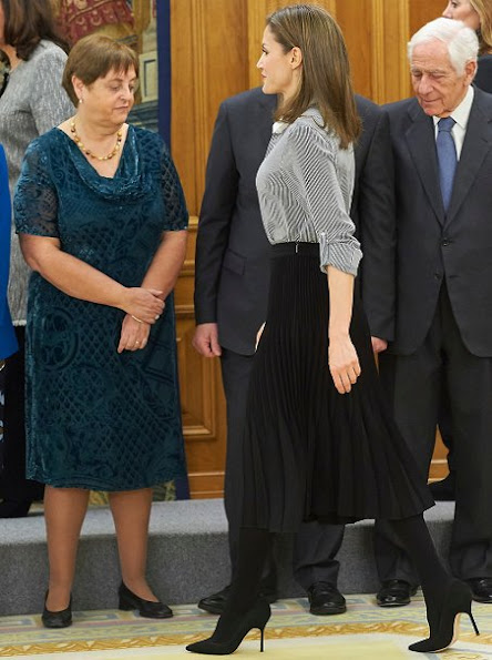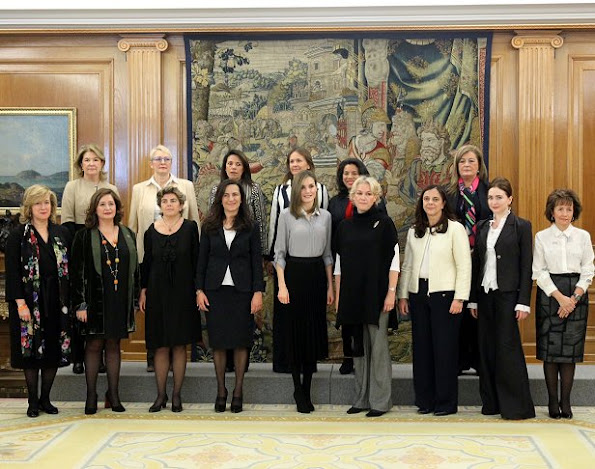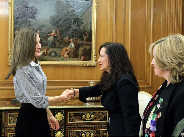 Queen Letizia of Spain receives the representatives of the Vianorte-Laguna Foundation at the Zarzuela Palace on February 15, 2017 in Madrid, Spain. Vianorte Foundation is helps people suffering from Alzheimer who need palliative care.