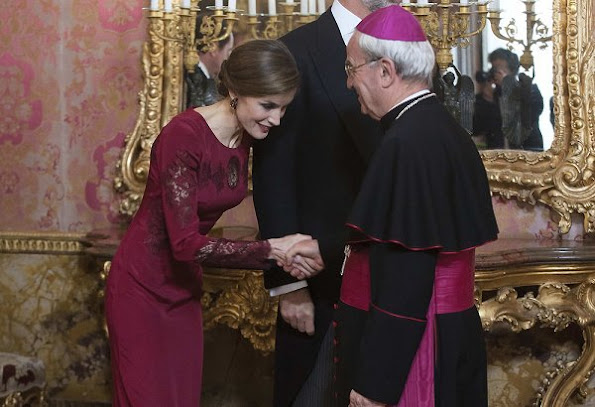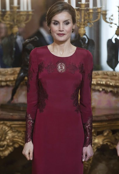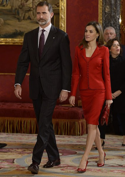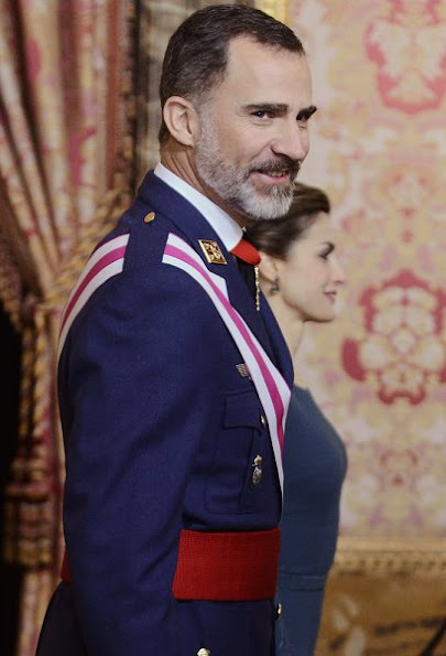 King Felipe VI of Spain and Queen Letizia of Spain attend the annual Foreign Ambassadors reception at the Royal Palace on January 26, 2017 in Madrid, Spain.