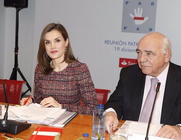 Queen Letizia of Spain attended a meeting with the Foundation of Aid Against Drug Addiction (FAD) at Headquarters of Banco Santander on December 19, 2016 in Madrid