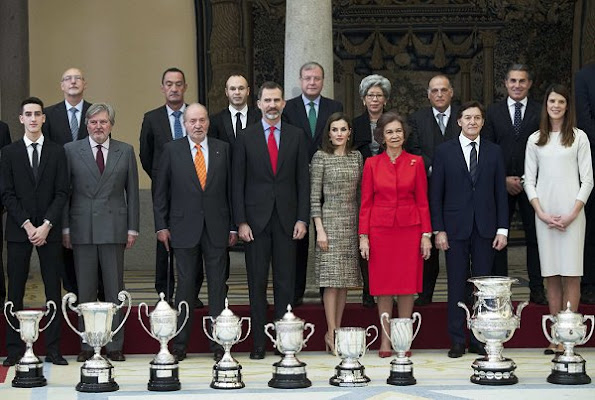 King Felipe VI and Queen Letizia of Spain, Former King Juan Carlos, Queen Sofia of Spain and Princess Pilar of Borbon attend the National Sports Awards 2015 ceremony at the El Pardo Palace on January 23, 2017 in Madrid, Spain.