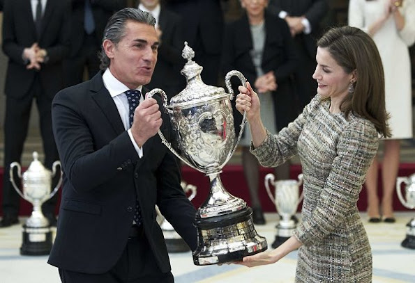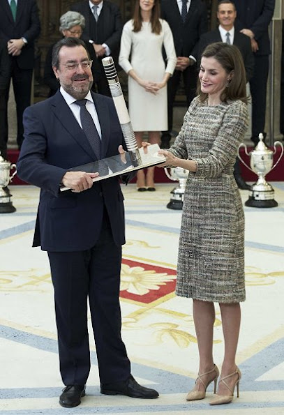 Queen Letizia of Spain attends awards ceremony of the "Tomas Francisco Prieto Price 2017", to Japanese artist Mitsuo Miura at the Currency Museum (Museo Casa de la Moneda) on January 20, 2017 in Madrid, Spain.