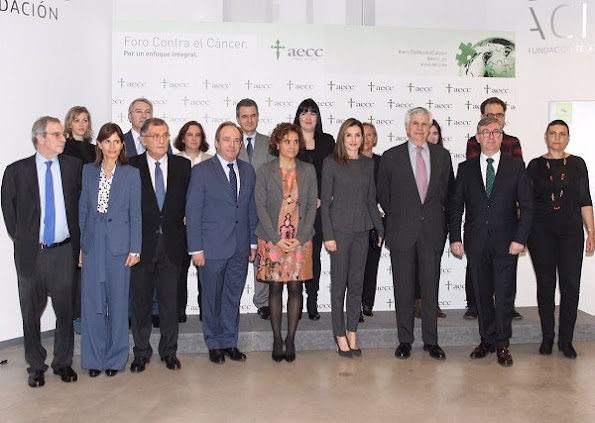 Queen Letizia of Spain attended the 4th Forum Against Cancer organized by the AECC at the Telefonica Foundation in Madrid, Spain on February 2, 2017. Queen Letizia is honorary president of the Spanish Association Against Cancer.