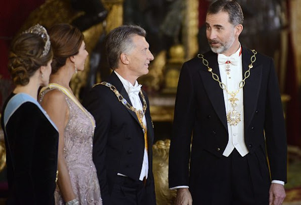 In the evening of February 22nd, Spain's King Felipe and Spain's Queen Letizia, Argentina's President Mauricio Macri and his wife Juliana Awada attended a Gala Dinner at the Royal Palace in Madrid, Spain.