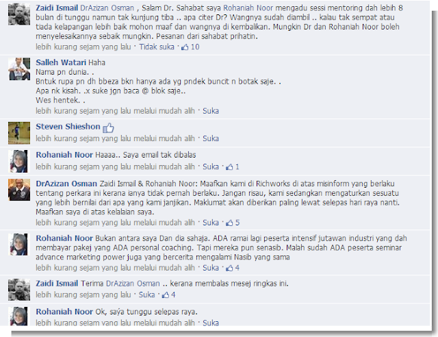 Panas di Facebook saya mengenai pendedahan yang saya buat berkaitan seminar Dr Azizan Osman yang dipuja ramai.