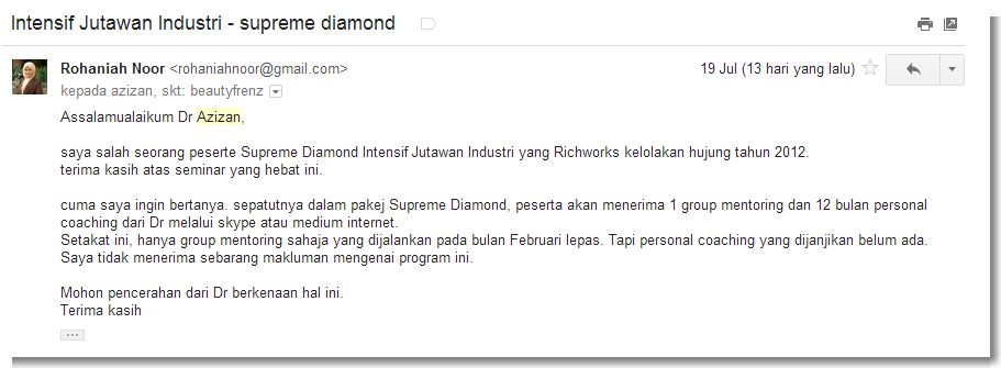 rupanya ada peserta Advanced Marketing Power yang dijanjikan personal coaching pun menerima nasib yang sama..