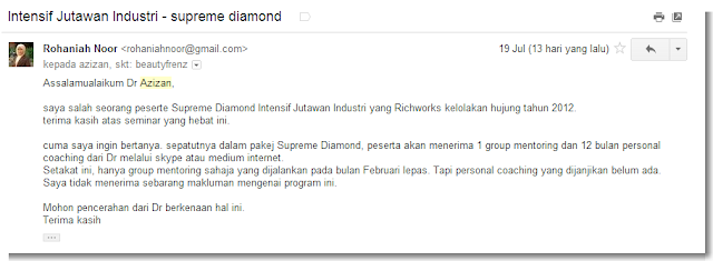 Tertarik dengan janji manis dan teknik pemasaran beliau, saya ambil pakej Diamond.