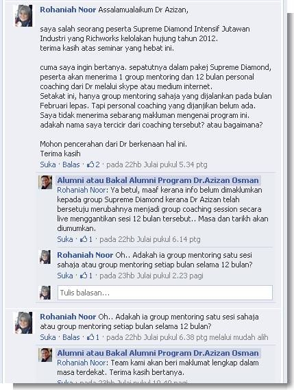 'dr azizan telah bersetuju merubahnya menjadi group coaching session secara live menggantikan sesi 12 bulan tersebut'