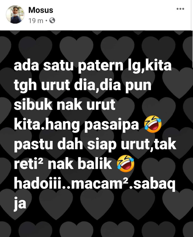Tgamak dia nk up post gini bg bayangan nk buat Massage body to body dgn customer jntn. Gay kah?