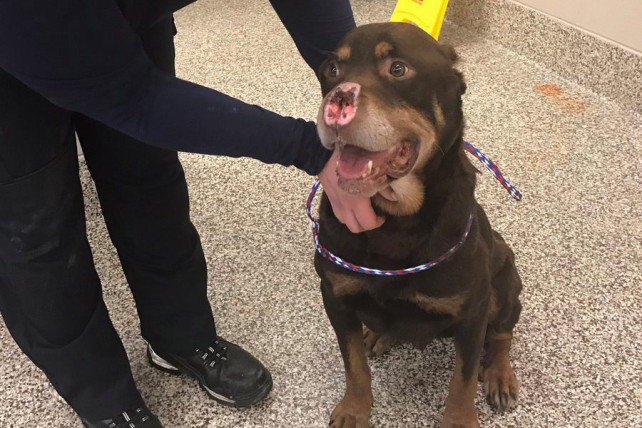 The Rottweiler telah dibawa ke sebuah pusat penjagaan haiwan di Detroit dan dirawat bagi kecederaan itu.