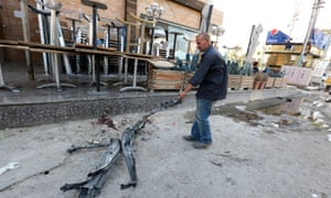 A man drags a piece of debris from the site of the bombing in Baghdad. Photograph: Ali Abbas/EPA