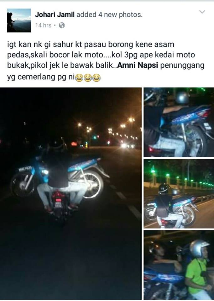 "Ketika itulah Johari membuat keputusan untuk mengangkat motosikal Nazrudin yang rosak itu di belakang, manakala saya menunggang motosikal terbabit.