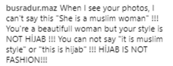 Namun apa yang menjadi perhatian netizen ialah sekeping foto yang dimuat naik dalam laman IG nya. Seorang netizen @busradur.maz telah meninggalkan satu komen yang mengkritik cara Neelofa berpakaian.