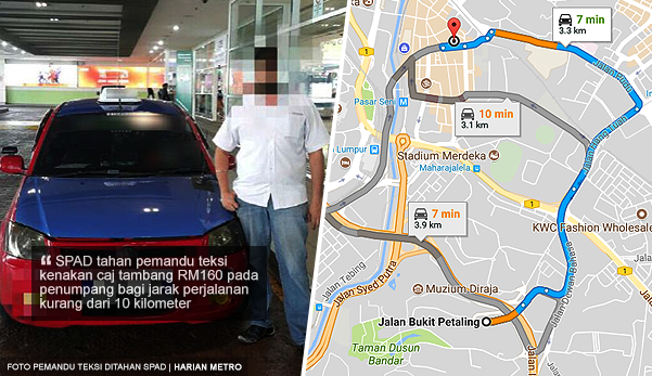 Jarak perjalanan kurang dari 10 km, pemandu teksi kenakan caj RM160