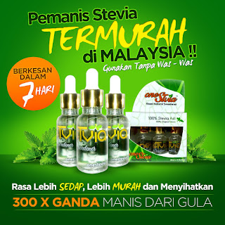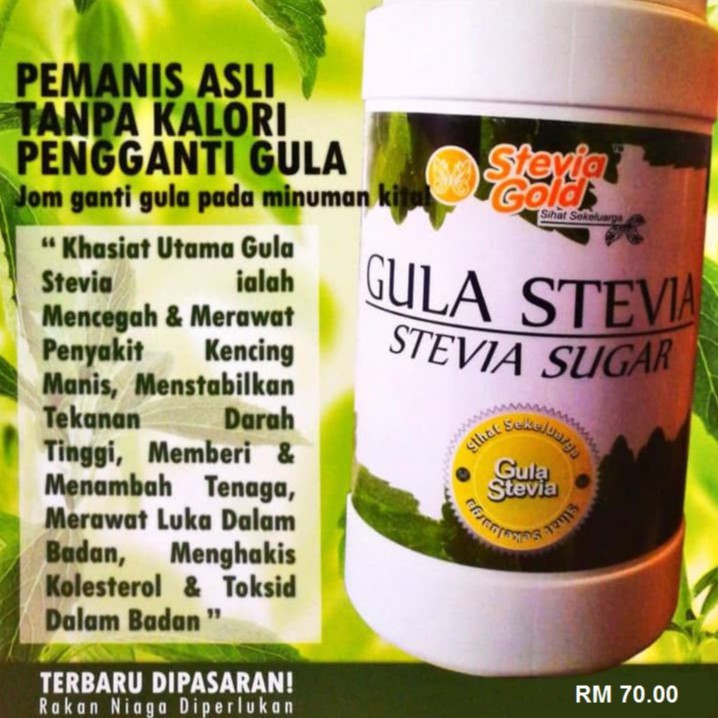 Stevia Gold (gula pasir Stevia) dan One Stevia (gula stevia secair) bukan sekadar sebagai pemanis yang sedap, paling menghampiri rasa gula tebu, malah ia juga merawat masalah kencing manis dan berbagai penyakit kronik lain seperti sakit jantung, darah tinggi, masalah kolestrol berlebihan dll.