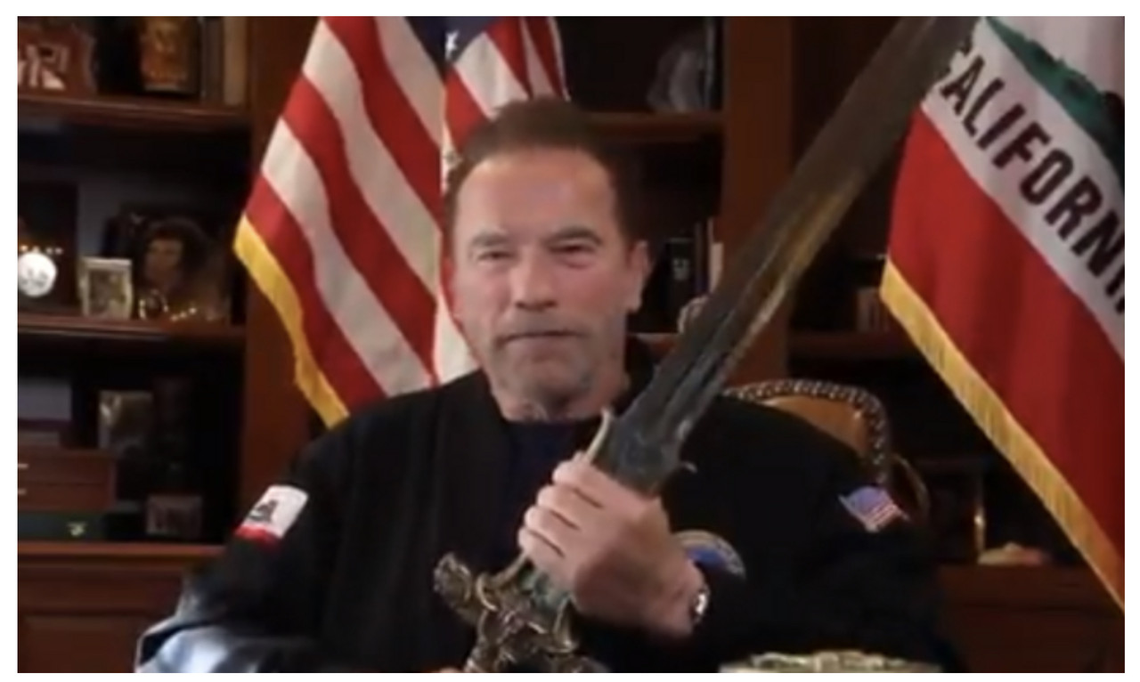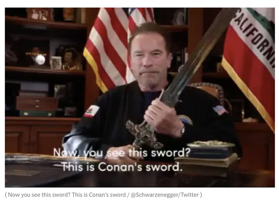 ( Now you see this sword? This is Conan’s sword / @Schwarzenegger/Twitter )Now you see this sword? This is Conan’s sword.