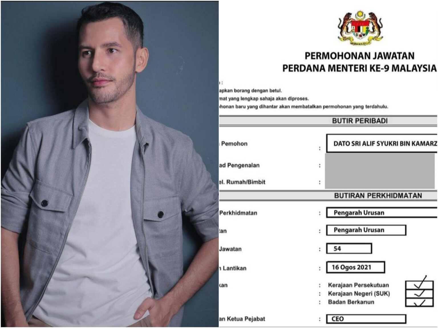 PETALING JAYA: Penyanyi dan usahawan kosmetik, Datuk Seri Aliff Syukri menyatakan hasratnya untuk memohon jawatan sebagai Perdana Menteri ke-9 bagi menggantikan Tan Sri Muhyiddin Yassin.