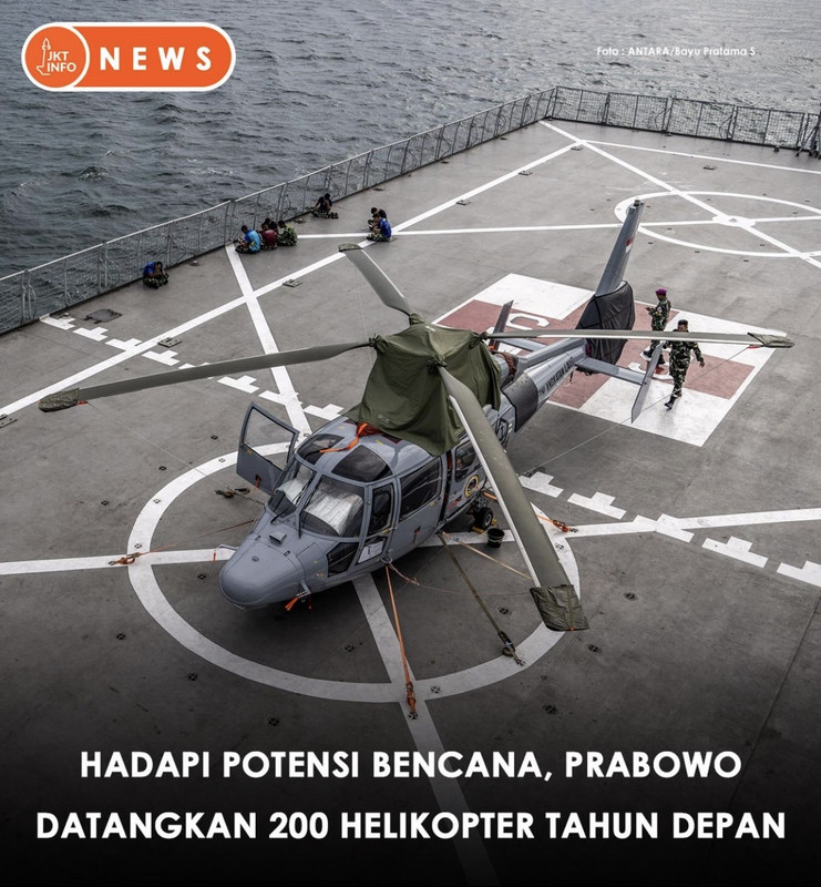 Dalam kenyataannya, Prabowo menjelaskan bahawa kerajaan kini telah mengerahkan 50 helikopter untuk membantu pengurusan bencana di Sumatra.