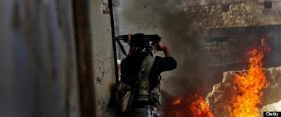 Tentera dan penduduk Syria mengangkat tangan untuk melawan tentera Assad dan perang bermula sejak Assad naik sebagai presiden.