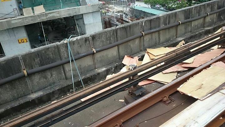 Bahan binaan menghempap trek LRT Kelana Jaya Line !