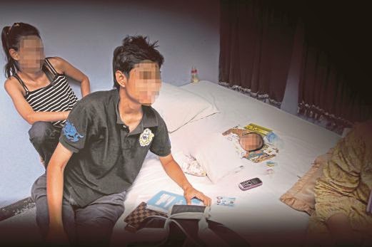 | WANITA yang diperiksa dalam Op Mawar Merah bersama bayi di sebuah hotel. |
