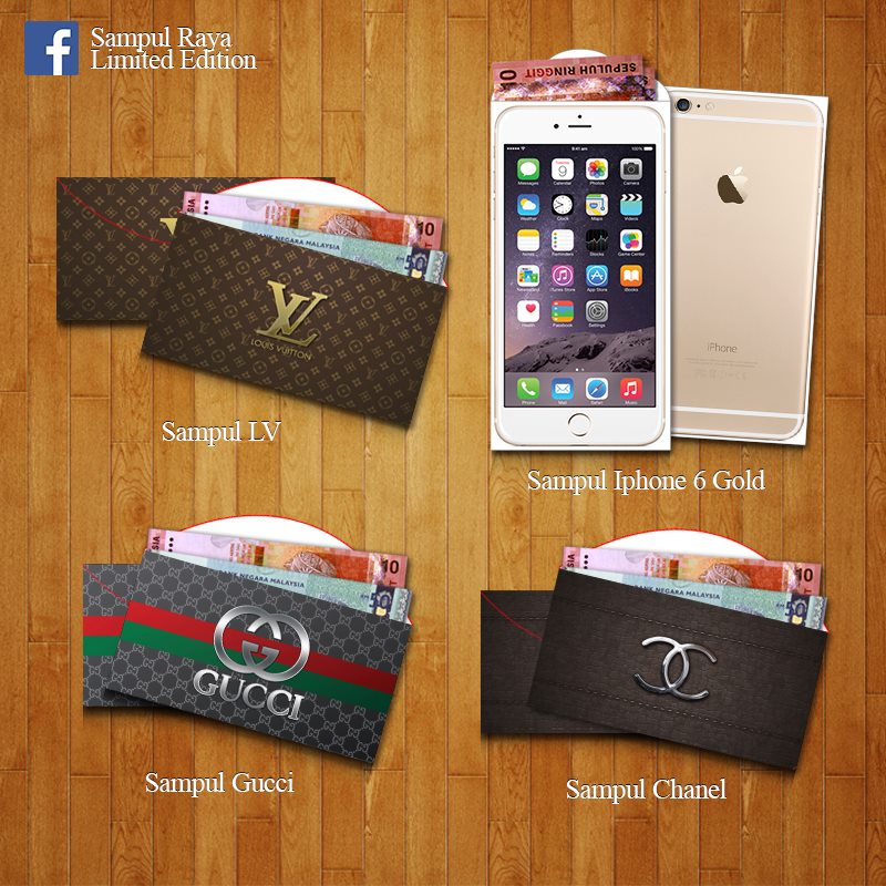 SAMPUL DUIT RAYA 2015 DESIGN IPHONE 6 GOLD | LV | GUCCI | CHANEL