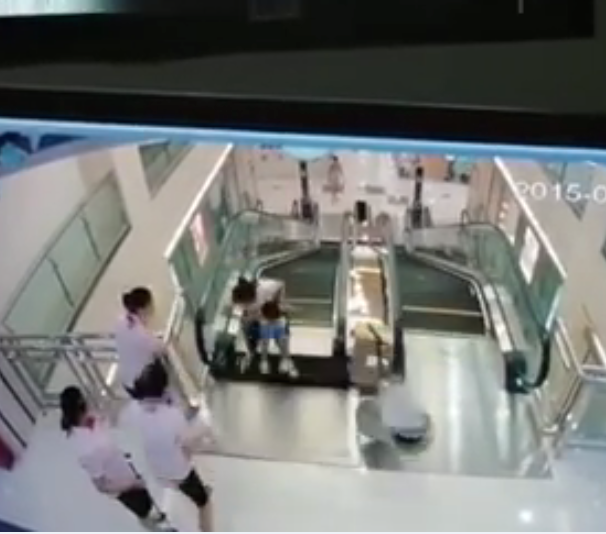 China - Seorang wanita berumur 30 tahun maut apabila dia "ditelan" oleh eskalator ketika sedang menaiki tangga bergerak untuk ke tingkat atas bersama anaknya.