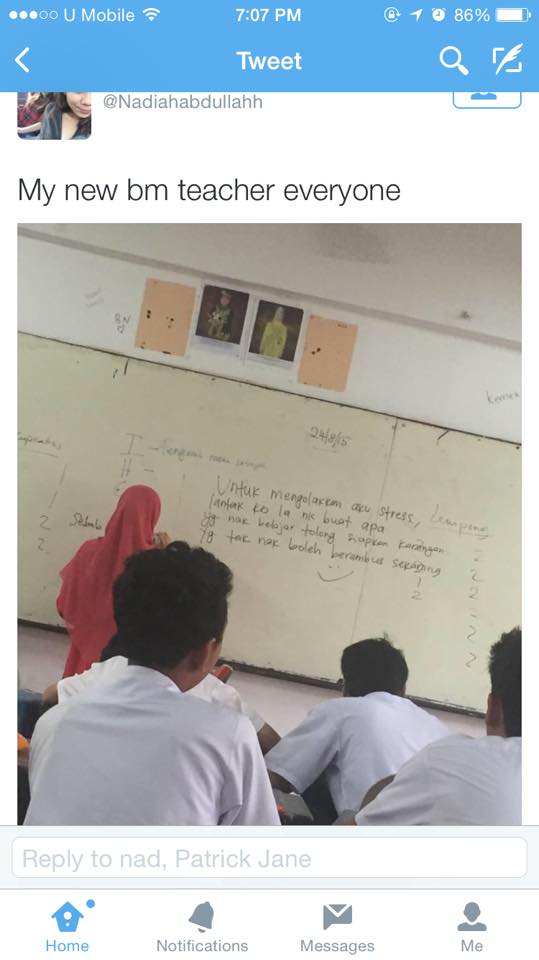 kemotifan apa budak sekolah ni nak upload gambar ni kat media sosial? nak hencap cikgu? sbb apa? cikgu tu garang sangat? pangai cikgu tu mmg teruk sampai murid2 pun tak tahan? atau mungkin saja cikgu tu mmg dah sgt stress dgn murid2 yang pangai ntah mcm hapa2 ntah .. pastu murid ada hati nak viral kan konon prangai buruk cikgu tu?