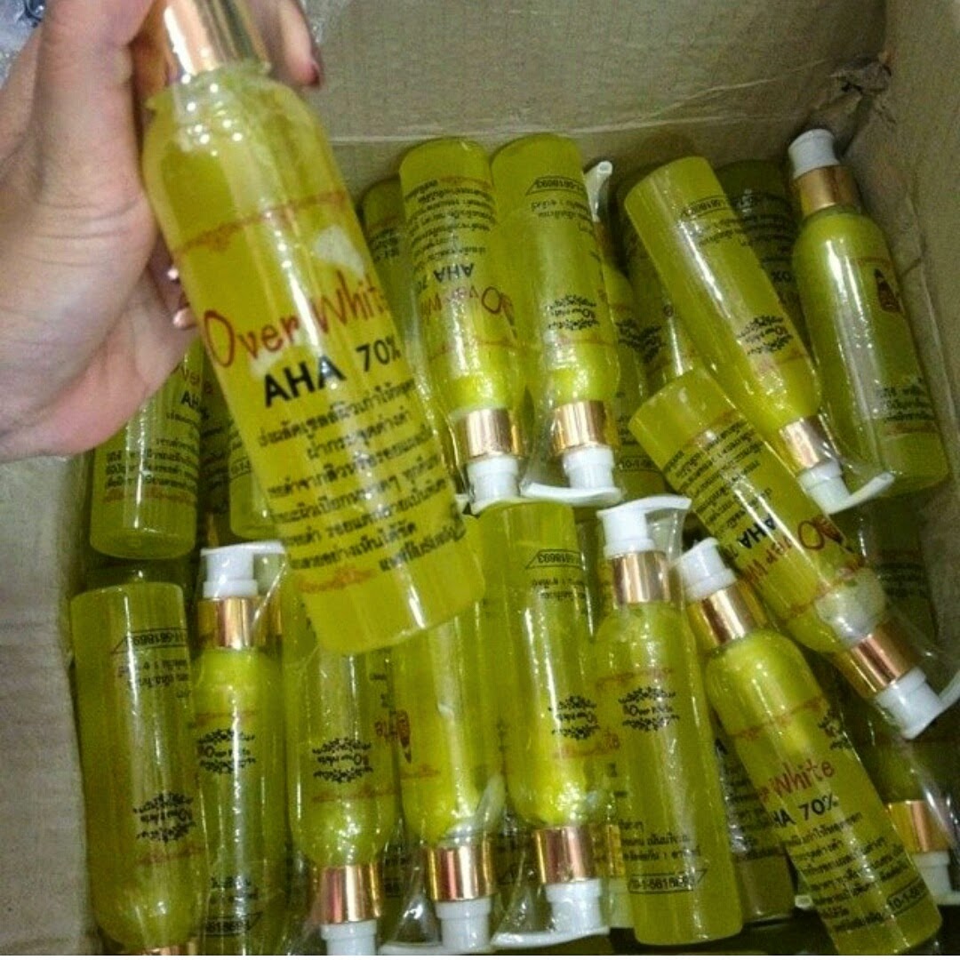 Serum Over white AHA 70 % berfungsi untuk memutihkan kulit yang gelap akibat sunburn serta amampu menghilangkan bintik-bintik hitam. Serum ini cukup berkesan dan sangat memuaskan kepada pengguna yang telah memakai serum ini. Ia dirumuskan dengan Asid Glycolic dan mengandungi Over white AHA ++ deoxy arbutin + Vitamin B3 + UV SPF50++