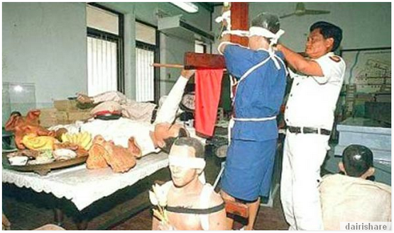 Di China tak perlu benda benda ni semua. Ikat kat tiang mata kasi tutup dan tembak. |