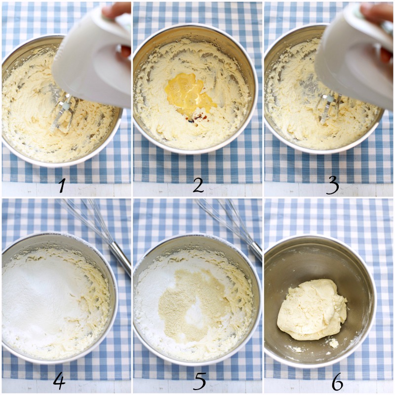 Masukkan esen vanilla dan telur dan putar hingga pucat warnanya.