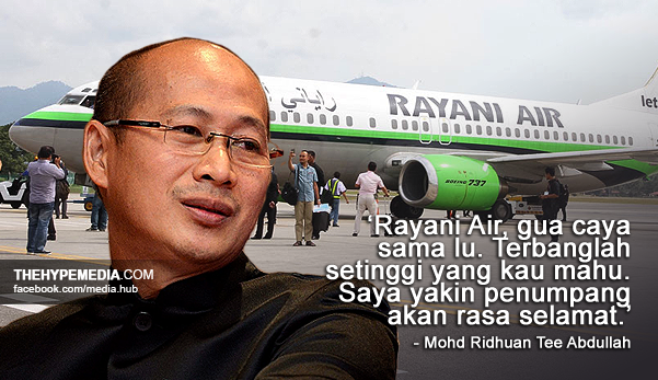 "Akhir sekali kepada Rayani Air, Gua caya sama lu. Terbanglah setinggi yang kau mahu. Saya yakin penumpang akan rasa selamat. Aku tetap akan memilihmu. Allah bersamamu meskipun tidak bersunat," katanya. - THEHYPEMEDIA.COM