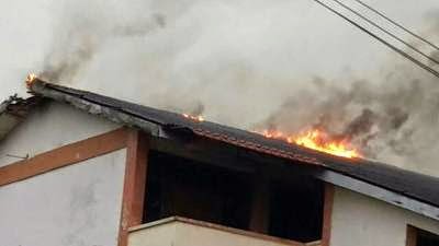 Selain dari sekolah berkenaan, panahan petir yang berlaku petang semalam juga telah menyebabkan beberapa rumah di Jalan Rumbia Taman Daya turut terbakar.